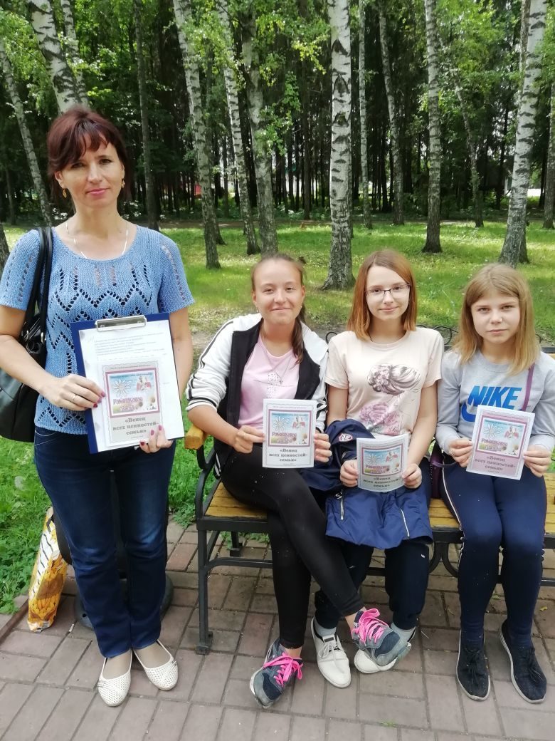 В этот день работники Дубенской районной библиотеки провели уличную акцию «Ромашковое счастье». Жителей села поздравили с Днем семьи, любви и верности, еще раз напомнили историю праздника, рассказали о его символах и традициях, раздавали им дайджесты «Венец всех ценностей – семья». Прохожие отвечали на вопросы, как они понимают, что такое семья, рассказывали о своих семейных традициях.