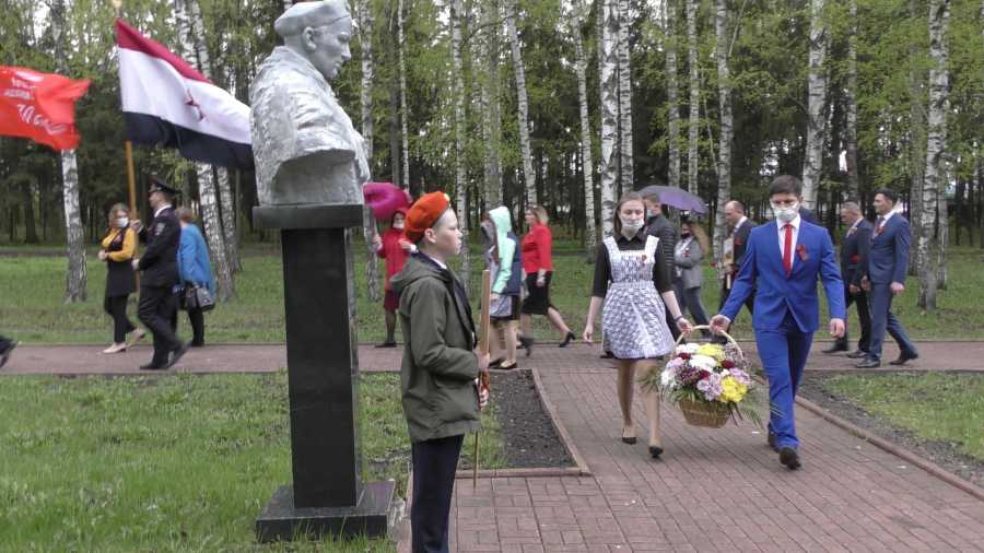 Жители и гости в колонне с корзинами цветов в Парке культуры и отдыха к Аллее Славы возложили цветы к бюстам Героев.Митинг завершился праздничным концертом.