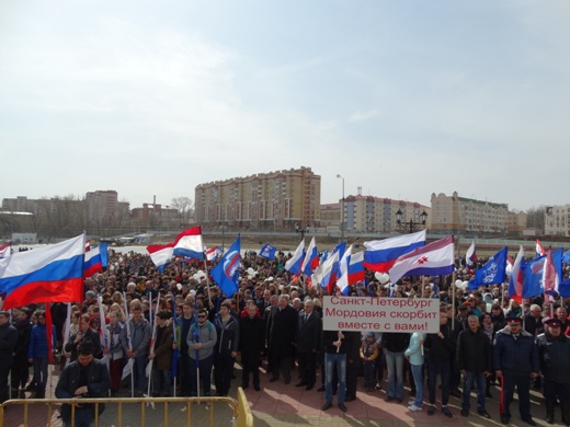 8 апреля в Саранске прошла массовая акция "Вместе против террора", посвященная солидарности с жителями Санкт-Петербурга и памяти жертв террористических актов, в котором приняли жители Дубенского района.